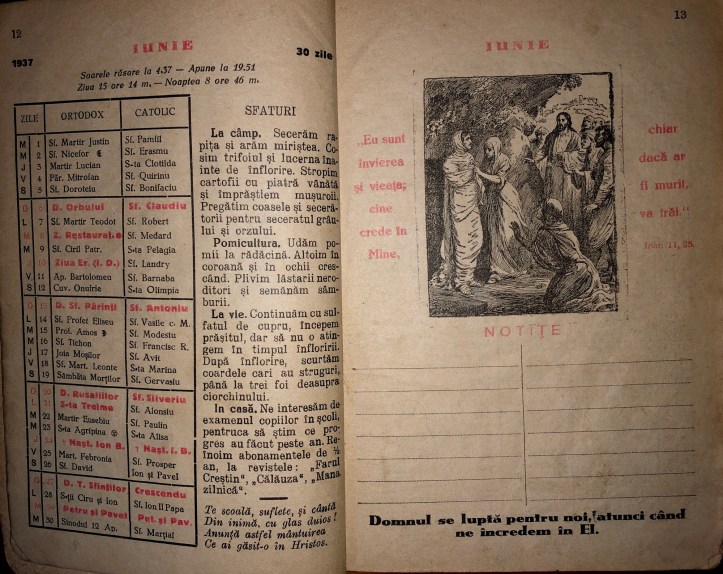 În casă – ne interesăm de examenul copiilor în școli, pentru ca să știm ce progres au făcut peste an. Reînnoim abonamentele de 1/2 an, la revistele: „Farul Creștin”, „Călăuza”, „Mana zilnică”.