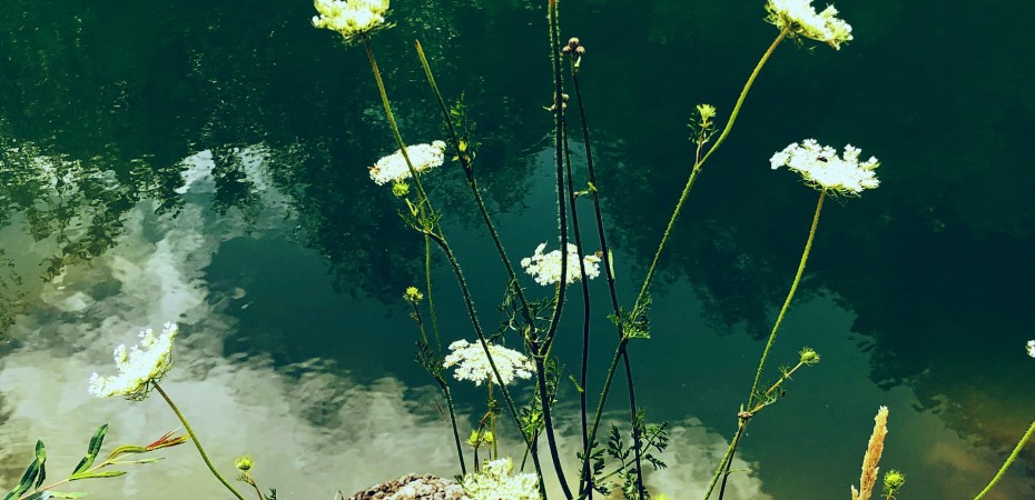 Reeds by the shady pool, lilies on the water: